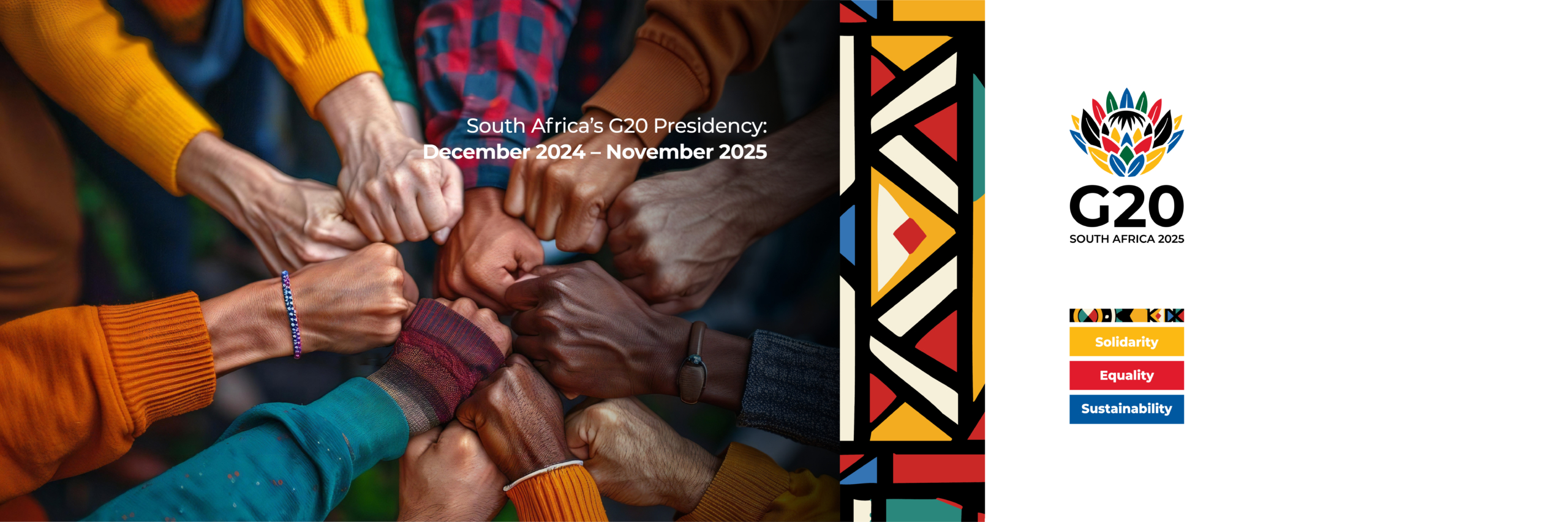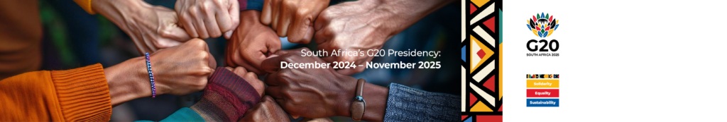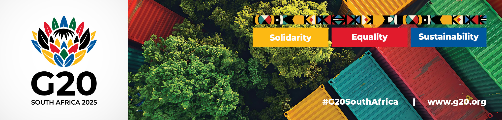 The G20 South Africa logo/brand is the property of the Department of International Relations and Cooperation (DIRCO). The logo/brand should not be utilised for fraudulent or unauthorised transactions. The G20 South Africa logo/branding has considerable legal protection arising from various Acts of Parliament, and international agreements and protocols.